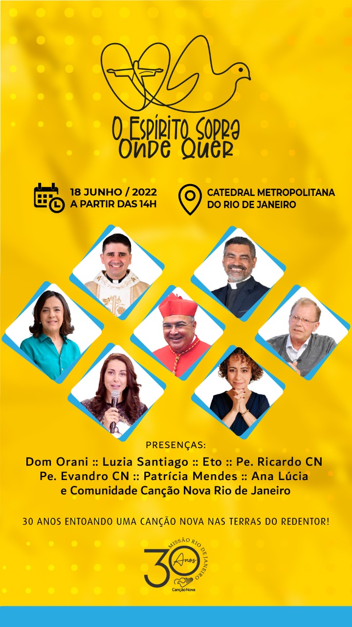 “30 anos entoando uma Canção Nova nas terras do Redentor!” é o tema do evento “O Espírito sopra onde quer 2022”, promovido pela Canção Nova, a ser realizado na Catedral de São Sebastião, no Rio de Janeiro, no dia 18 de junho.